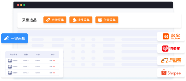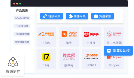 支持采集1688,淘宝,拼多多,shopee,17网,搜款网等众多货源平台