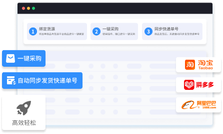 1688、淘宝、拼多多等一键采购,自动同步发货快递单号