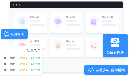 自动上下架,折扣活动,限时特卖,自动回评,自动置顶等店铺营销活动